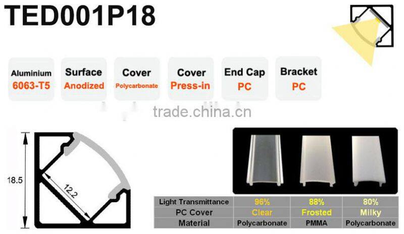 Home > Products > LED Aluminum Profile > Triangle Aluminum Profile for Corner and Surface Mounted TED001P18