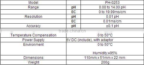 BJ-0253 continuously monitor and display the pH and EC values of a solution on an easy to read in one LCD’s.