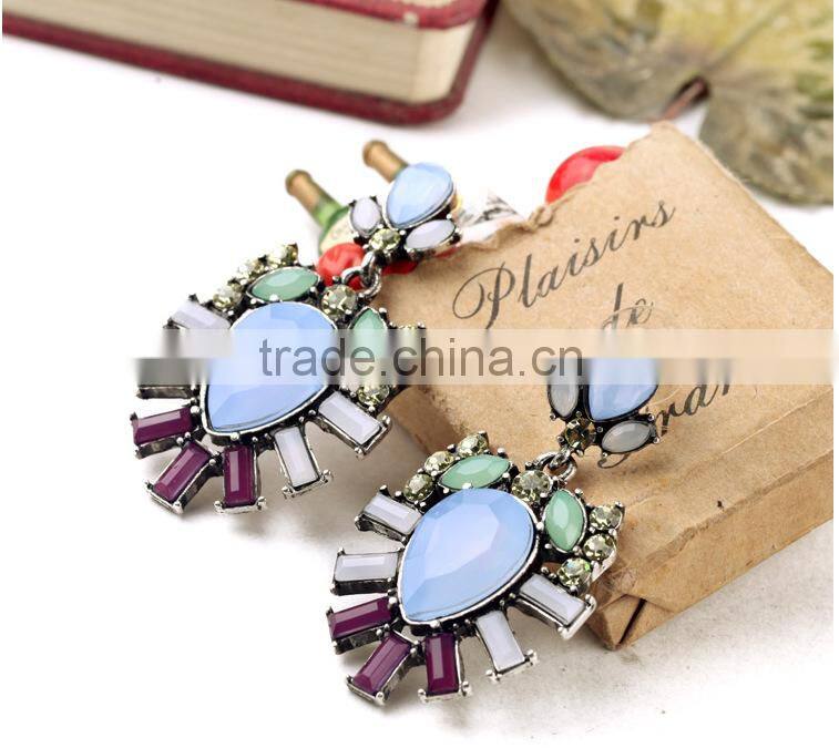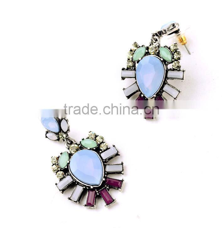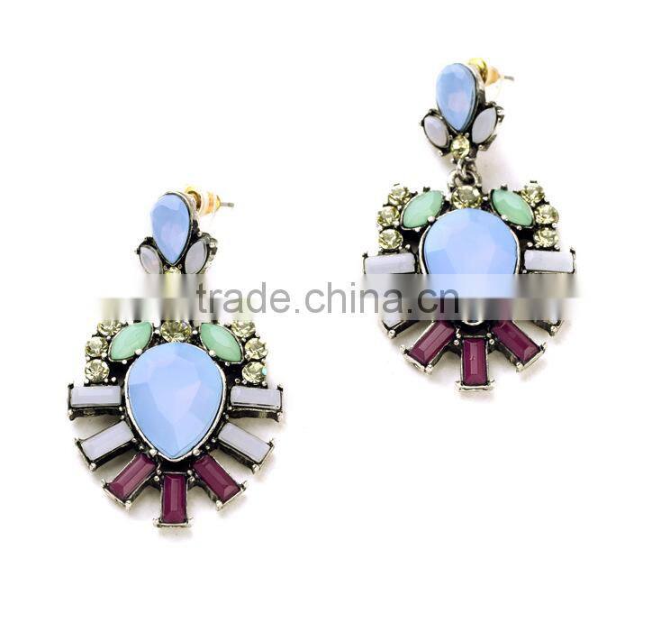 Rhombus Shape With Semi-precious Stone Ladies Earrings Designs Pictures