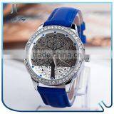 Fashion Diamond Tree Dial Water Resistance Leisure Style Quart Movt Leather Lady Women Watch
