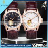 Multi Functions Three Eyes Mechanical 10m Water Resistance Genuine Leather Band Lady Wrist Watch Woman