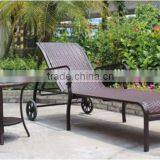 Metal -rattan Outdoor Furntiure Sun Lounger Chaise Lounger With Coffee Table