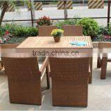 Plastic Wooden Teak Table Top With Rattan Wicker Chairs Teak Dining Set