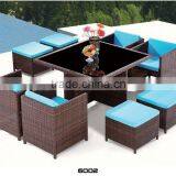 9pcs Rattan Wicker Dining Set With 4 Armchairs & 4 Ottoman &1 Galss Top Table
