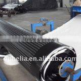 Composite Drainage Board is a dimple geomembrane, which produced by extruding plastic sheet into dimple shape. These dimples, in spatial structure with certain height, can resist long term high pressure without deformation. One the top of the dimples, there is filtration geotextile to make sure the drainage channel running well without any block for any article, for example, filling particles or concrete.