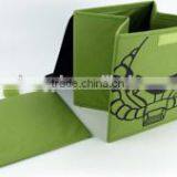 Printed Sturdy Non-woven Storage Box With Lid , Cheap Handles Folding Storage Box