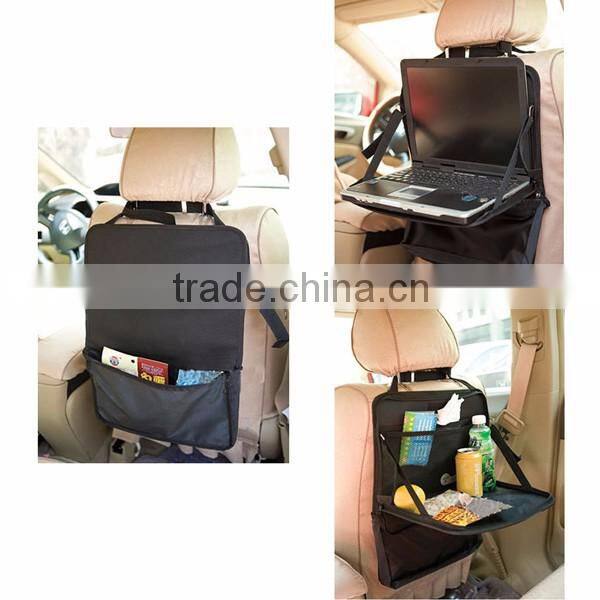 Folding Canvas Car Backseat Organizer , Laptop Beverage Book Pocket Organizer