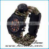 Hot Survival Bracelet Paracord Outdoor Watch With Compass Fire Starter Whistle