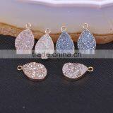 Titanium Coating Agate Quartz Stone Pendant Gold Plated Water Drop Gem Stone Druzy Pendant --12*16mm