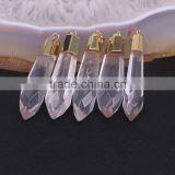 Gold Plated Cap Natural White Quartz Spike Charm Pendant Natural Crystal Point Gemstone Bead Spike Jewelry