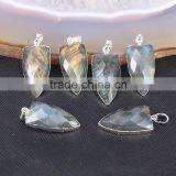 Natural Labradorite Pendant, Silver Plated Arrow Point Labradorite Gemstone Druzy Pendant