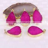 Rose Red Color Water Drop Agate Quartz Druzy Pendant Gold Plated Jewelry Stone Pendants