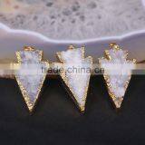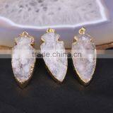 Natural Quartz Stone Druzy Arrowhead Pendant Gold Edged Gem Stone For Jewelry Making