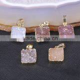 Fashion Natural Agate Gemstone Pendant, Square Shape Gold Plated Agate Quartz Pendant