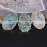 Fashion Faceted Agate Druzy Pendant, Waterdrop Stone Pendant, Gold Plated Edged Ocean Gem Stone Pendants