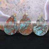 Fashion Faceted Agate Druzy Pendant, Waterdrop Stone Pendant, Gold Plated Edged Ocean Gem Stone Pendants