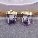 Natural Amethyst Gem Stone Pendant, Stone Point Pendant, Gold Plated Edged Drusy Amethyst Pendant, Druzy Pendant