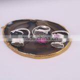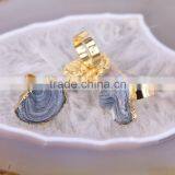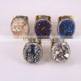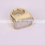 Naturtal Agate Druzy Quartz Rings, Metal Gold Electroplated Gemstone Ring