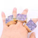 Natural Amethyst Quartz Rings, Metal Gold Electroplated Amethyst Gem Stone Druzy Ring