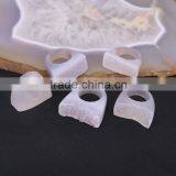Natural Agate Quartz Rings, Fine Gem Stone Druzy Geode Ring