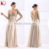Graceful Sequins Beaded Scalloped 3/4 Sleeve Chiffon Elegant Evening Dresses With Sleeves