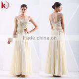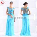 2015 High Quality Cap Sleeveless Evening Gown Embroidered Applique Beads Elegant Robes De Soiree