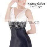 2015 High Quality New Fashion Round Neck Sleeveless Bow Belt Sexy Vestidos De Noche