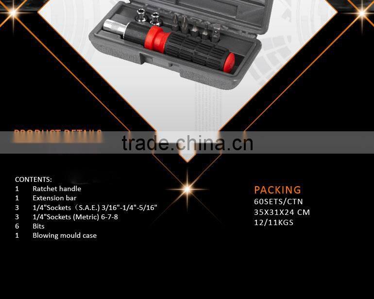 Home > Products > Mini Tool Set > 9pcs Metal Craft Hand Tool Ratchet Screwdriver Bit Socket Set
