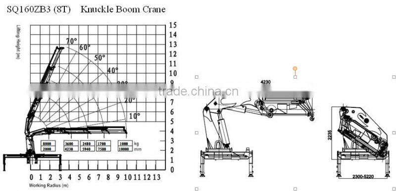 8ton Crane With Knuckle Arms, SQ160ZB4, Hydraulic Crane on Truck.