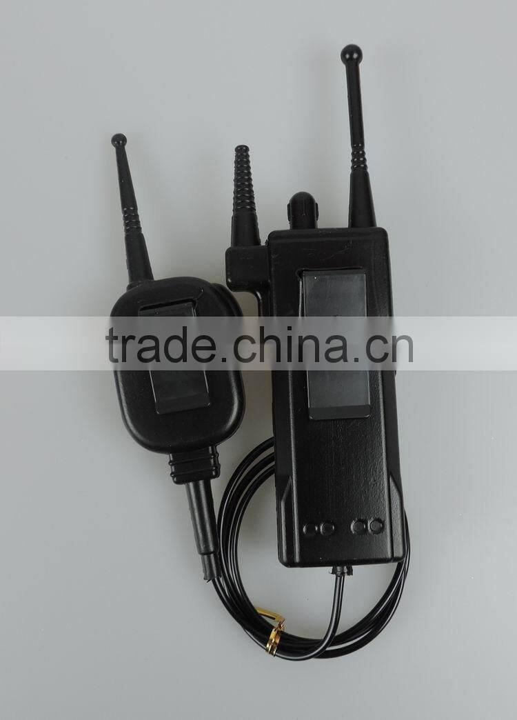 1 :the product have a big radio and a small raido,The size of two radio with about 70cm line connectio
