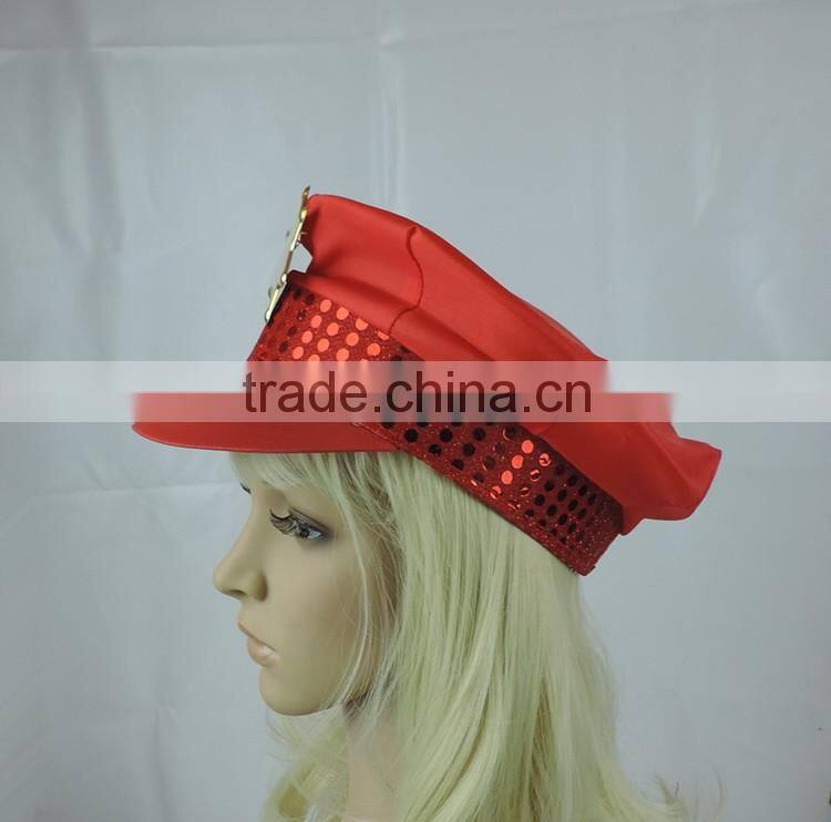 Home > Products > service hat(navy ,police,air force > Sequin Strip Police Officer Hat Uniform Cap Party Octagonal Service Caps
