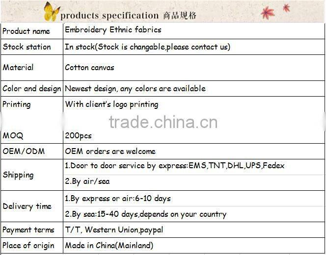 We mainly produce following products : fashionable ethnic bags ,leisure ethnic bags,ethnic embroidery bags ,vintage ethnic shoulder (backpack )bags ,ethnic messenger bags,clutch bags ,purse,wallet for woman etc.Our goods are loved by the majority of customers home and abroad because of unique design and superior quality.