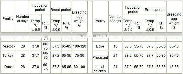 It is suitable for the families and specialized households to incubate chickens, ducks and geese, etc. This machine is produced according to the testing requirements of CE technology standard of EU, and has good reputation from the peasants in the rural area of eastern European countries. The machine has the characteristics of strong practicality, simple operation and long service life, etc.
