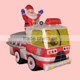Santa Claus With Gift Boxes in Inflatable Truck Outdoor