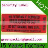 (transfer type) tamper evident security label Designed to secure closures of packaging. High sensitivity security mechanism