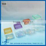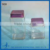 Square Clear Glass Jar for Food With Colored Plastic Lid