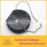 Black Round PU Leather Coin Purses With Metal Chain