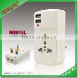 13A Multi Socket and Two 2.0A USB Adaptor With Light World Travel Socket