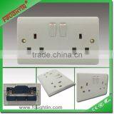Double UK Socket With Switch White Color Plastic Plate Wall Switched Socket