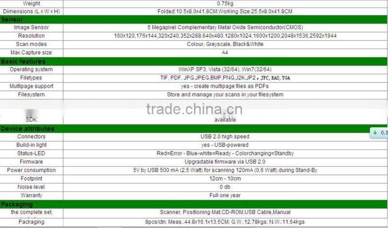 5 Mega Pixel a4 Portable Quick Scanner ,office Document Scanner