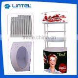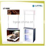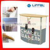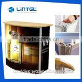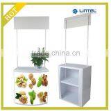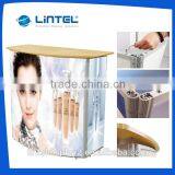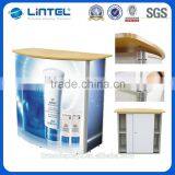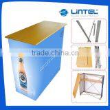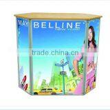 The counter promotional desk is with simple construction can be assemble and disassemble easily,the fabric image and the board stick to the hook and loop fastener on the edge of the frame.Because of the stable quality and competitive cost , this is one of our most popular fabric display counter.