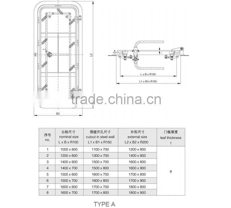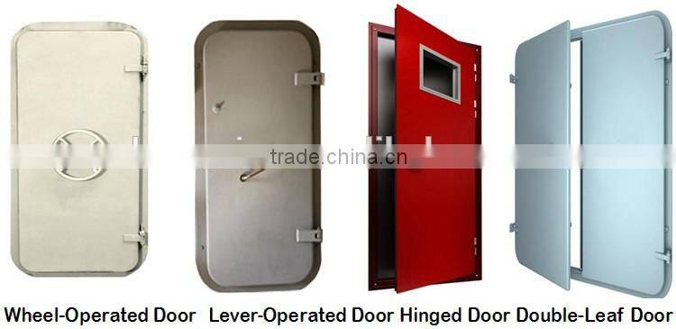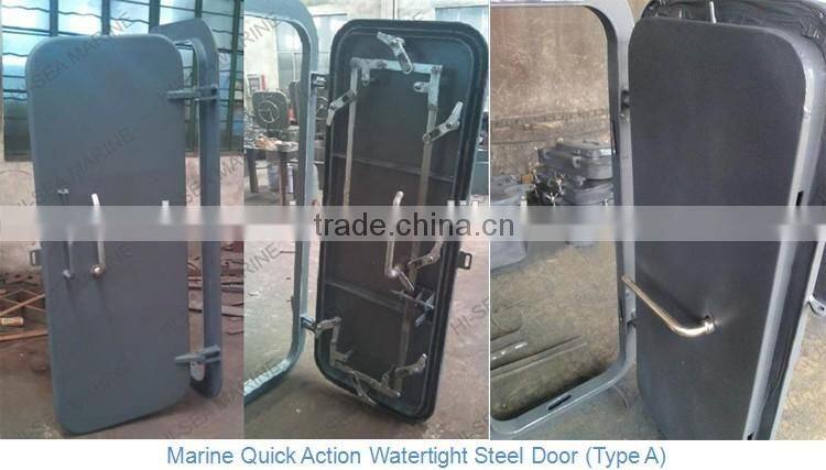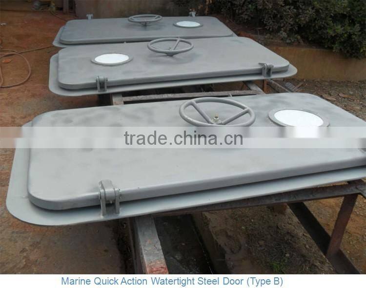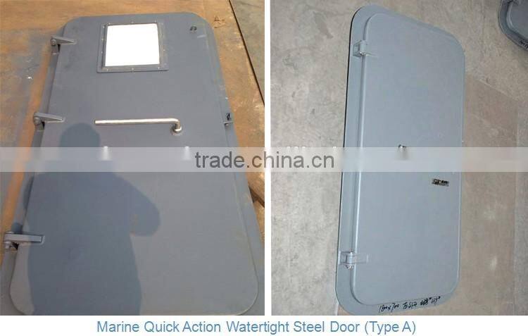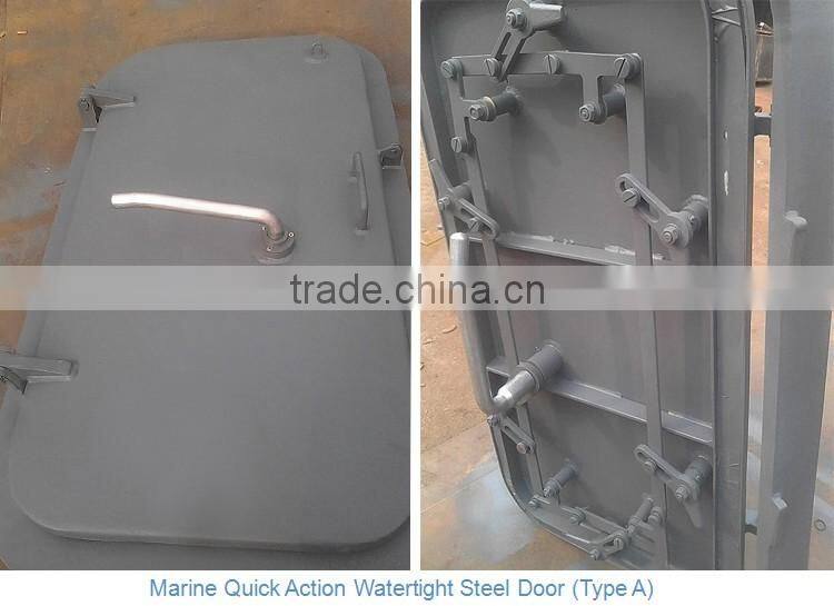 Marine quick action watertight steel ship door is used for engine room or other compartments with max. water pressure 0.06Mpa. There are two type: type A - marine quick action watertight steel door with levered handle, type B - marine quick action watertight steel door with hand-wheel handle.