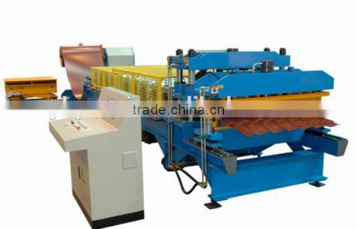 BH-1000-820 Glazed tile roll forming machine is equipped with Feeding device (5 T capacity),transmission, rollers and main machine, punching after roll forming, cutting device, hydraulic system, electric control system, run out table, etc.
