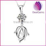 925 Sterling Silver Double Dolphins Diamond Pendant