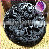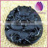 2015 Latest Unique Design Black Carved Dragon Obsidian Pendant