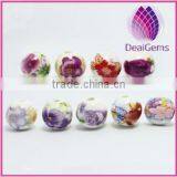 Bead Porcelain 8mm Round With Flower, 2-2.5mm Hole.