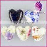 Double-sided Puffed Heart With Flower Multicolored Porcelain Bead
