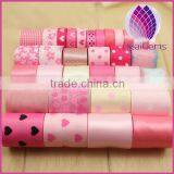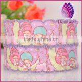 Pink Color 25mm Width Cartoon Pattern Satin Ribbon With Lacework