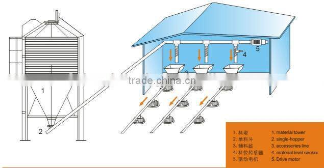 This system delivers feed automatically through motor under the control of the feed sensor, which ensure birds feeding during their whole growing period.