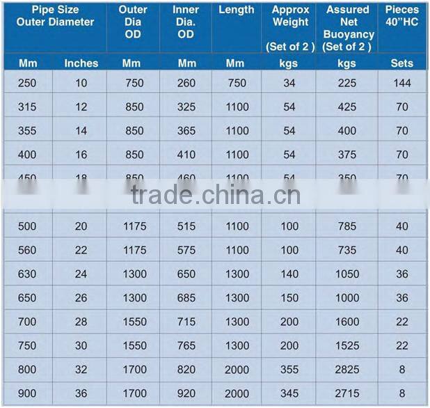 Closed Cell Polyurethane filling is an optional feature and floats are available as empty shells as per customer requirements. Cell Foam used is‘Green environment friendly.